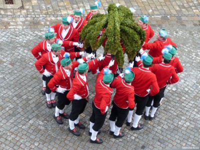 Ist das Sommerhaus gebildet, so werden die Bögen gehoben und die ganze Figur dreht sich einmal linksherum, dann mit einer Kehrtwendung einmal rechtsherum.